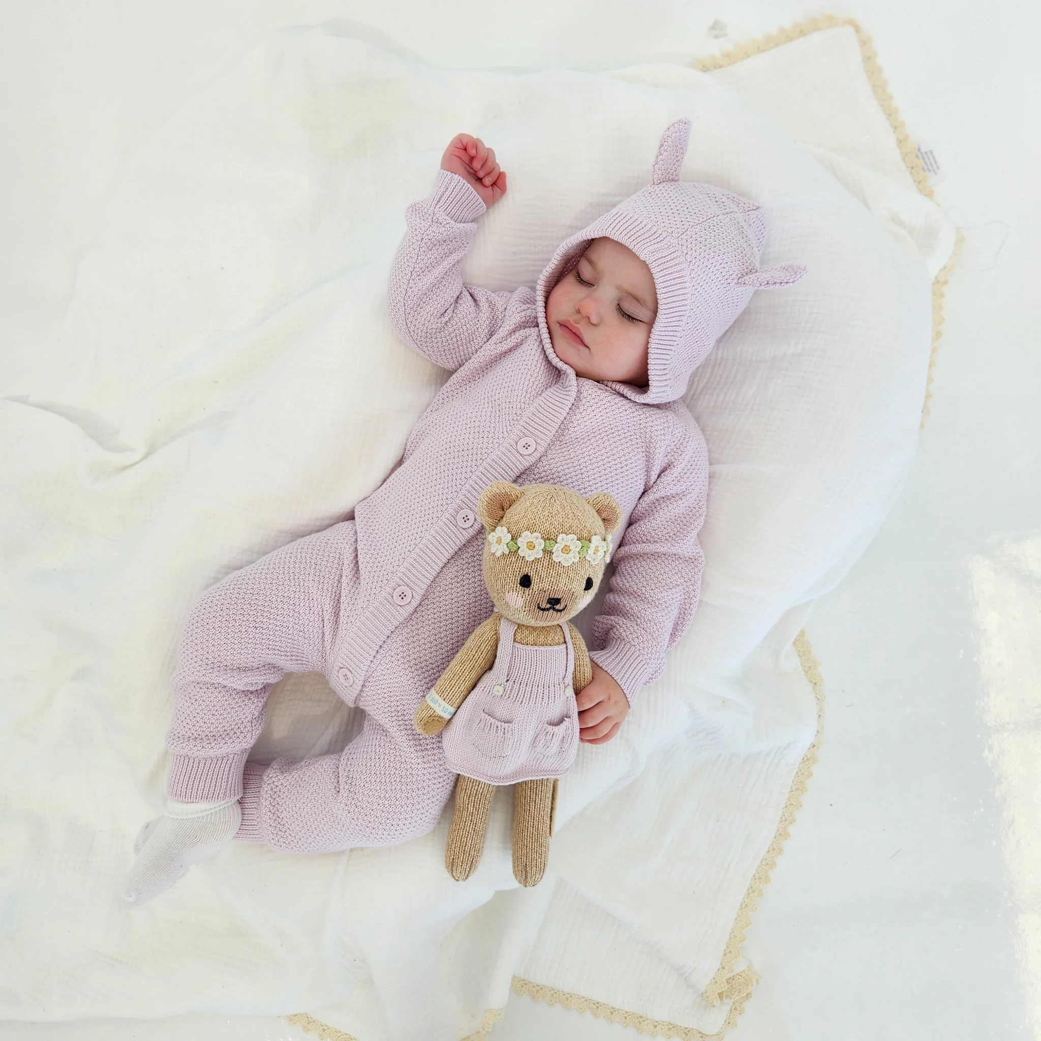 Bear Knitted Romper - Lilac Blossom