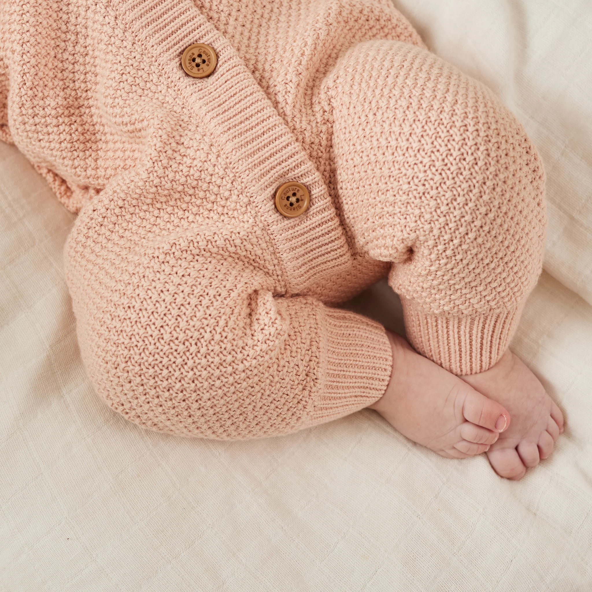 Bear Knitted Romper - Vintage Peach