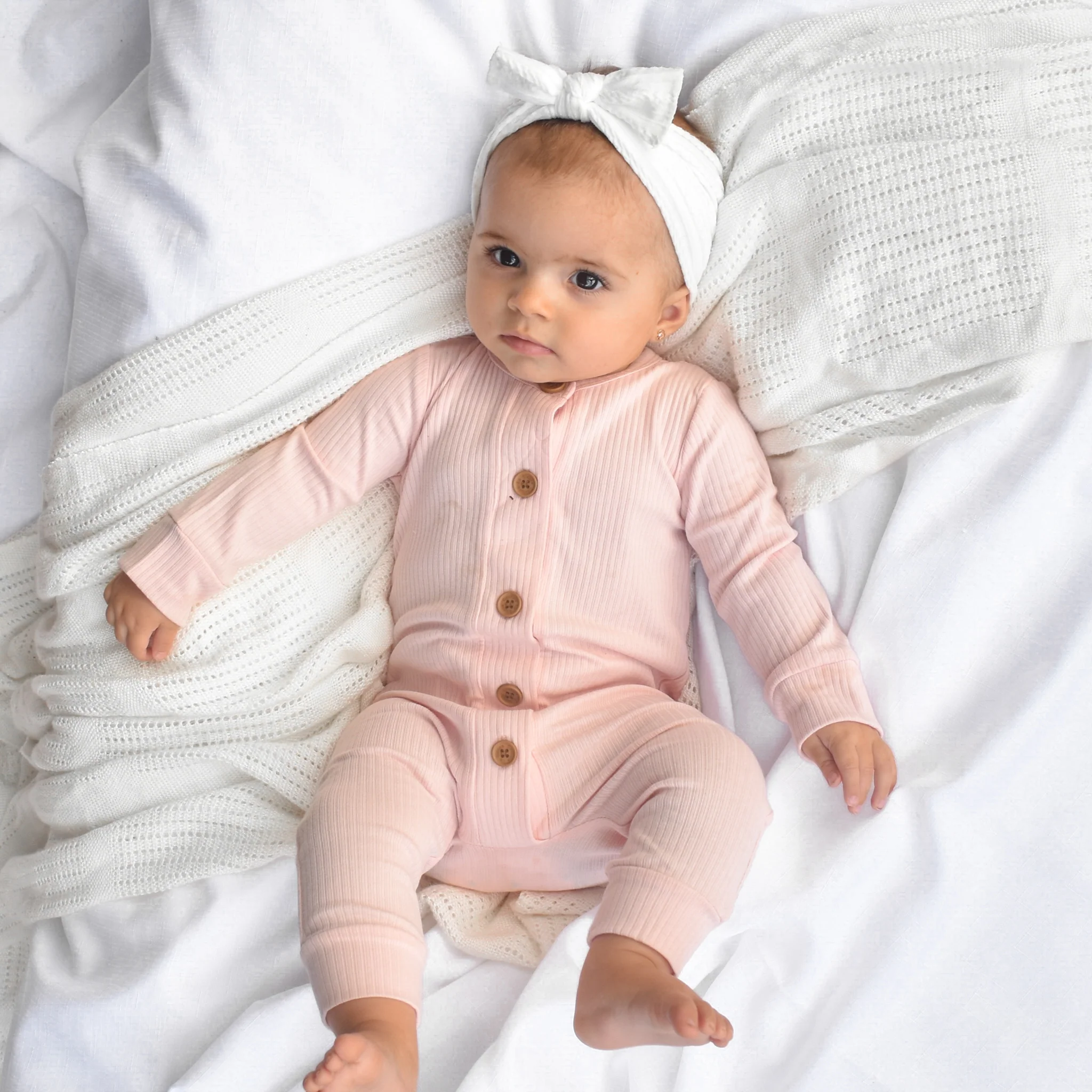 Cozy Long Sleeve Louie Romper - Peachy