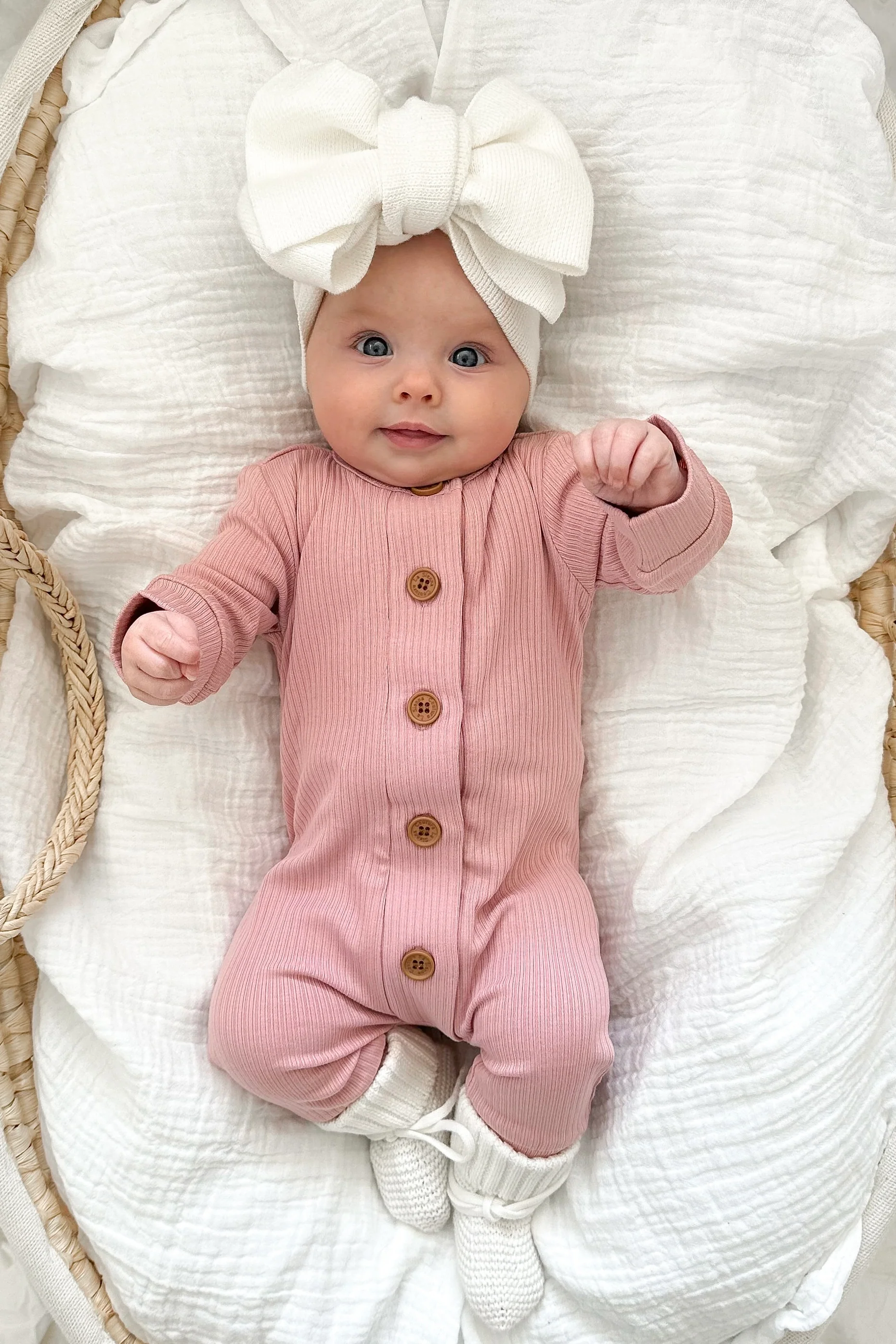 Cozy Long Sleeve Louie Romper - Rosewater