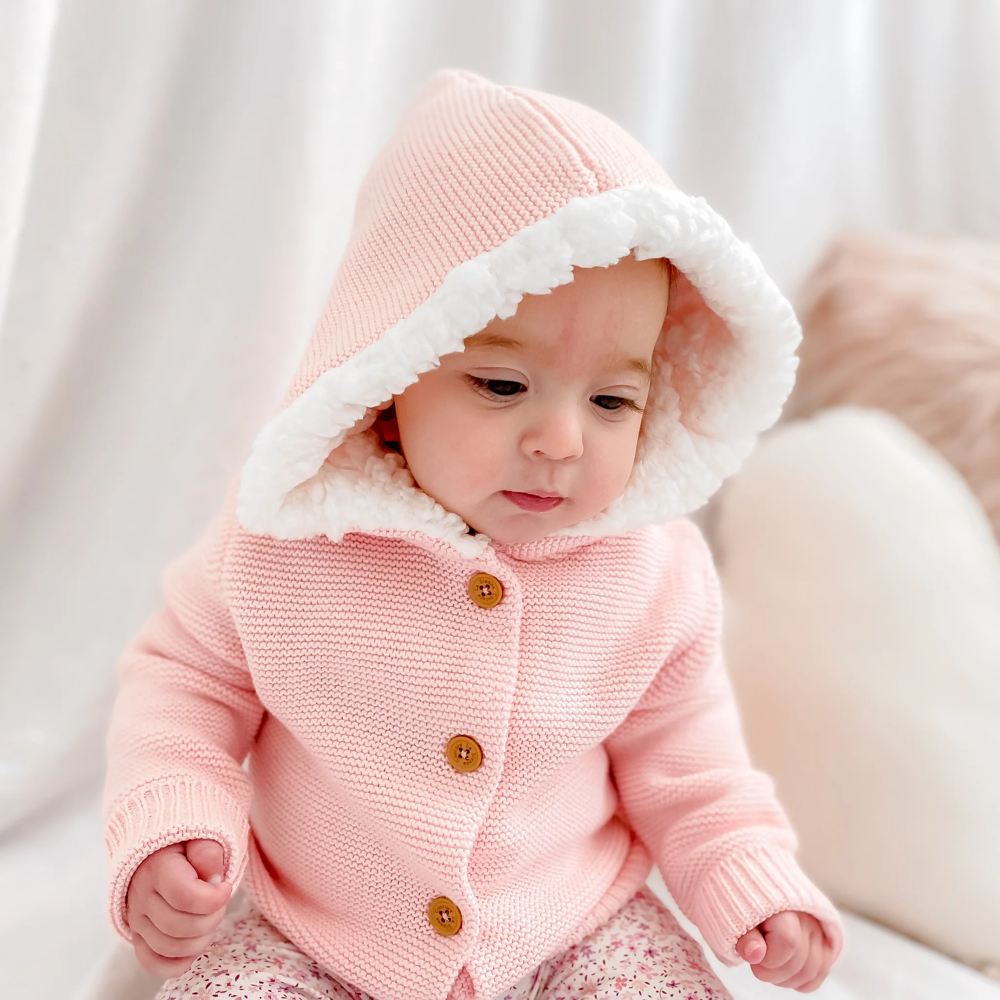 -70%Fur Hood Knitted Cardigan - Peachy Pink—